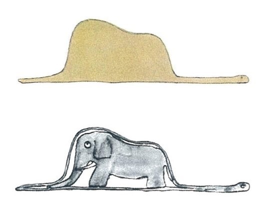 나는 화가라는 멋진 직업을 포기하고 말았다. 결국 다른 직업을 선택해야 했고, 비행기 조종법을 배웠다. 전 세계 곳곳을 비행하며 조금이라도 통찰력있는 어른을 만나면 늘 갖고 다니던 1호 그림을 보여주며 시험했지만, 늘 이런 대답이 돌아왔다. “모자구나.”